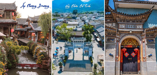 - Thành cổ Lệ Giang - Thành cổ được xây dựng vào cuối đời Tống cách đây hơn 800 năm, nằm trên cao nguyên Vân Quý, ở độ cao 2.400m so với mặt nước biển. Nhà cửa nơi đây có kiến trúc độc đáo pha trộn giữa phong cách của người Hán, Bạch, Tạng kết hợp với phong cách truyền thống của người Nạp Tây bản địa. Không chỉ vậy, Lệ Giang còn là trung tâm thương mại sầm uất của con đường huyền thoại Trà Mã Cổ Đạo, nơi các lái buôn thực hiện việc trao đổi ngựa Tây Tạng lấy Trà Trung Hoa. Thành cổ này được UNESCO công nhận là Di sản văn hoá thế giới vào năm 1997. Một di sản văn hóa thế giới với phong cảnh đẹp đẽ, được mệnh danh là "Venice của Phương Đông". Nơi đây, nhà nhà đều có dòng suối chảy qua, với đôi bờ trải đầy hoa cúc. Những cây cầu nhỏ xinh xắn bắc ngang, được trang trí bằng các bậu hoa tươi. Bên hiên nhà, những cây liễu buông rèm xuống các bậc cửa tạo nên khung cảnh đẹp đến siêu thực.