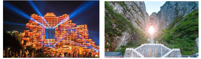 - Thiên Môn Sơn - một kỳ quan nổi tiếng nhất của Trương Gia Giới - nơi đây cũng là nơi biểu diễn nhiều lần máy bay xuyên vượt động Thiên Môn và đua nhảy dù quốc tế (1 lượt đi cáp treo + 1 lượt đi ô tô để trải nghiệm 99 khúc cua ngoạn mục với sự điều khiển xe của những người tài xế tài tình). Thiên Môn Sơn nằm trong vườn quốc gia Núi Thiên Môn, Trương Gia Giới, ở tây bắc tỉnh Hồ Nam, Trung Quốc. Ngọn núi này rất nổi tiếng với con đường trên trời và hệ thống cáp treo tại Thiên Môn được tuyên bố trong các ấn phẩm du lịch là "cáp treo dài nhất tại một ngọn núi cao nhất trên thế giới” với 98 cabin cáp treo và tổng chiều dài lên tới hơn 7.400 mét, độ cao của ga trên của tuyến cáp treo là 1.279 mét (bao gồm xe công cộng và 1 lượt cáp treo đi lên). Từ cáp treo Quý khách có thể ngắm toàn cảnh thị trấn và cảnh rừng núi nguy nga tráng lệ, ngắm cung đường được coi là đường đua nguy hiểm nhất thế giới với 99 khúc cua ngoạn mục. Khi lên tới đỉnh của Thiên Môn Sơn, quý khách sẽ đi theo con đường bao quanh những đỉnh núi, xuyên từ đỉnh núi này sang đỉnh núi khác. Một bên là núi, một bên là mây, thỉnh thoảng có thêm những lá bùa may mắn màu đỏ rực rỡ sẽ khiến quý khách cảm thấy lạc như lạc vào chốn bồng lai tiên cảnh, như đang đi trên 9 tầng mây của thiên đường. Tiếp tục, quý khách vượt qua 999 bậc thang thẳng đứng để lên đến Cổng Trời - nơi giao thoa giữa trời và đất.